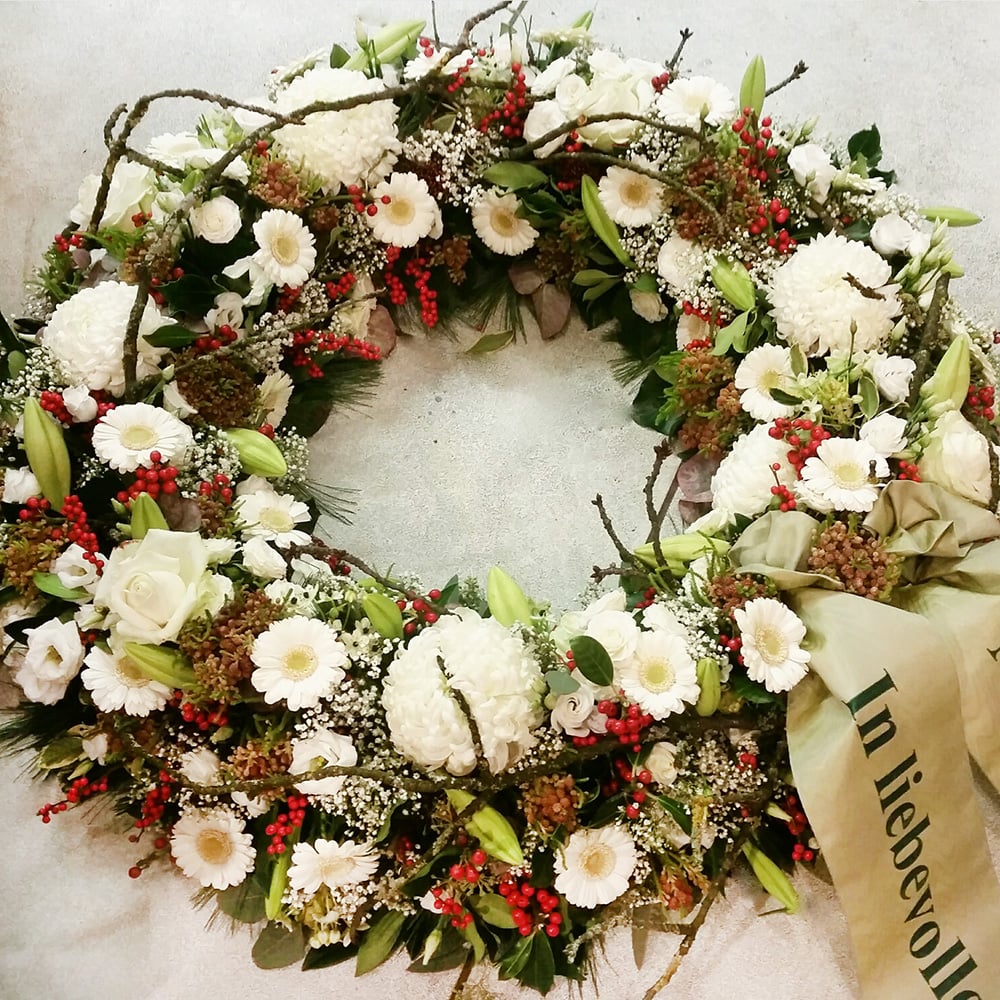 Blumen trösten, oft sind sie die letzte Ehre für einen geliebten verstorbenen Menschen. Unsere Trauerspenden sind einfühlsam und liebevoll kreiert. Wir fertigen für Sie: Kondolenzsträusse, Sargbouquets, Kränze, Wurfblumen oder Gestecke. Passend dazu sind Schleifen mit persönlichem Text und Beileidskarten erhältlich.